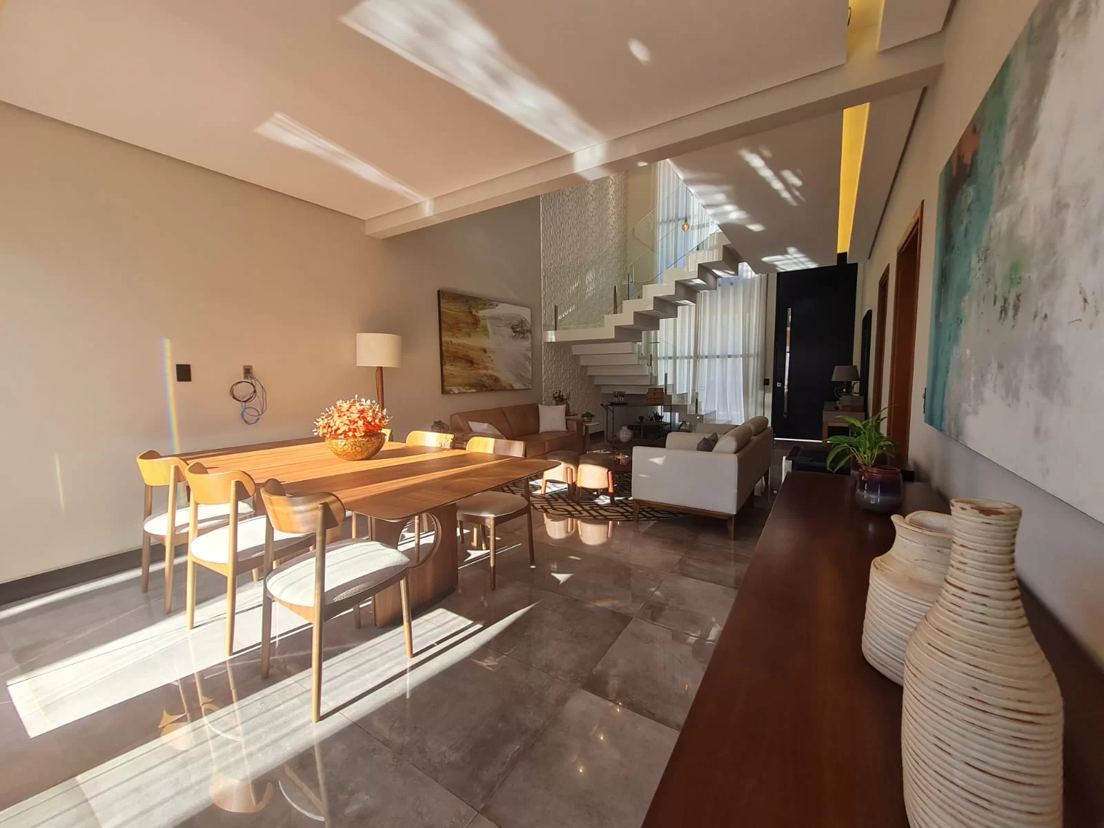 - sala com pé direito duplo com 02 ambientes (TV e Jantar)
