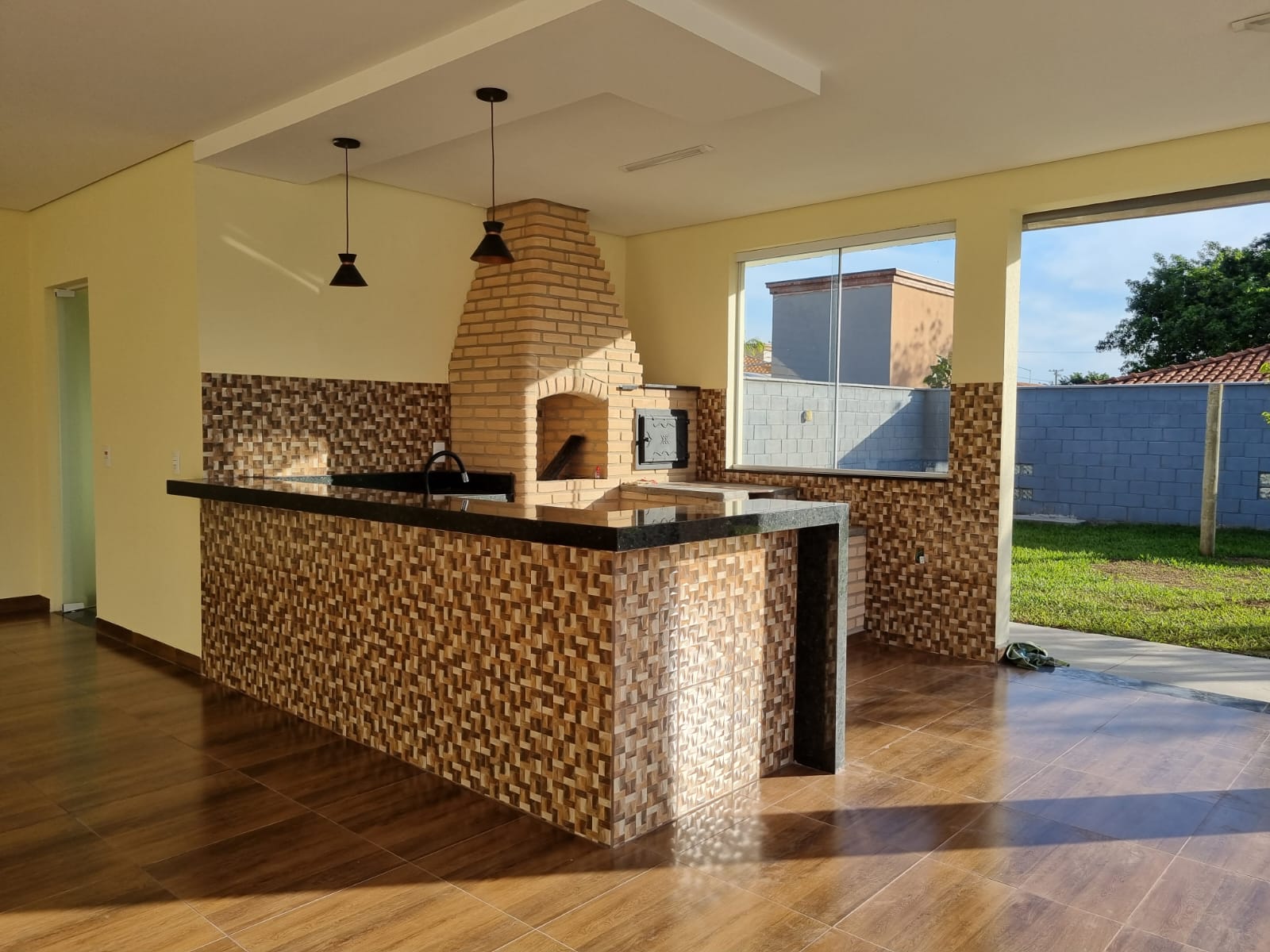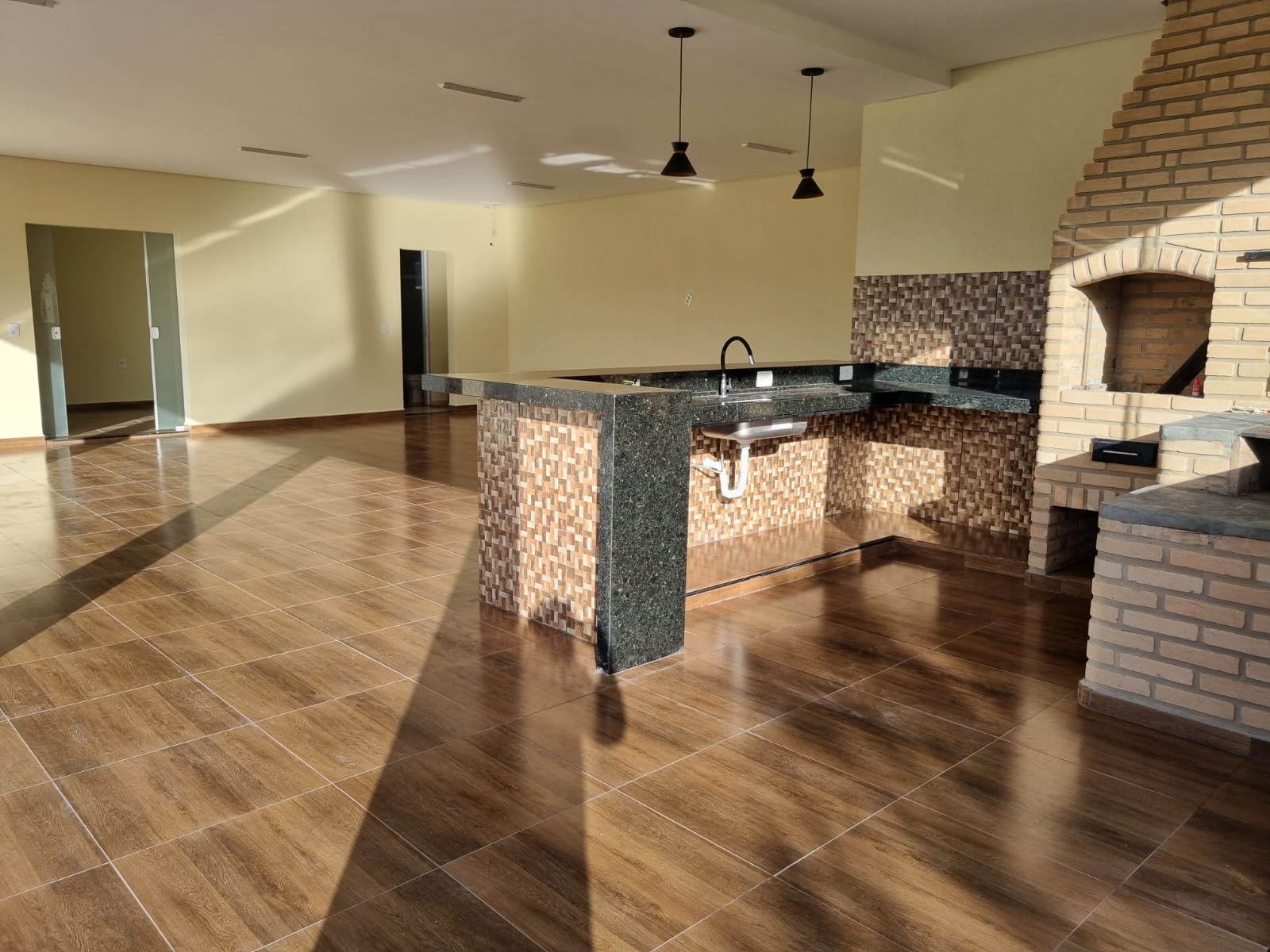 salão com area de churrasqueira
