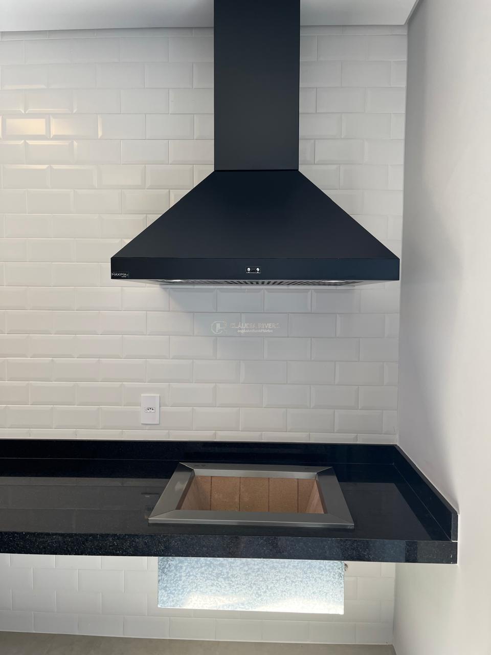 cozinha integrada com a churrasqueira com coifas, cooktop