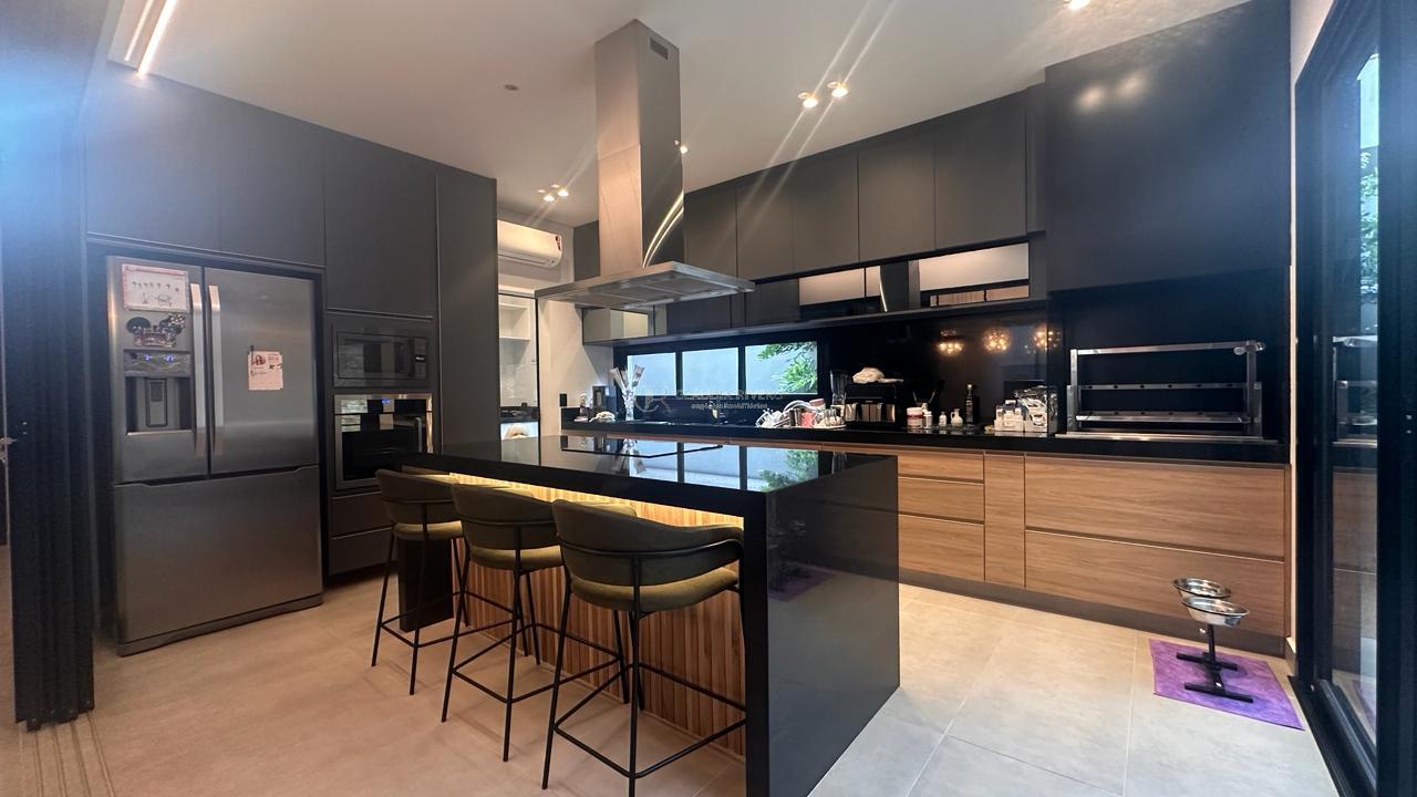 cozinha integrada com area gourmet , ilha com coifa e cooktop, microondas e forno